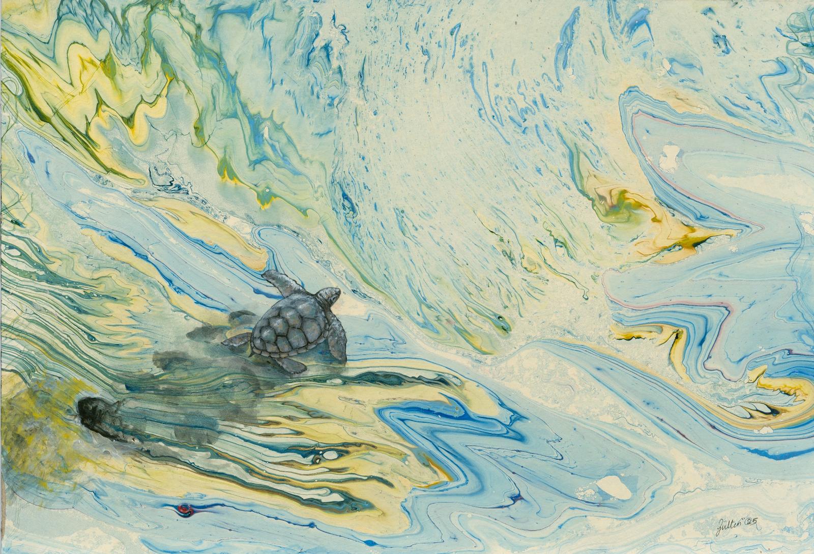 Tema: Doğa, deniz, kaplumbağa, akışkan sanat